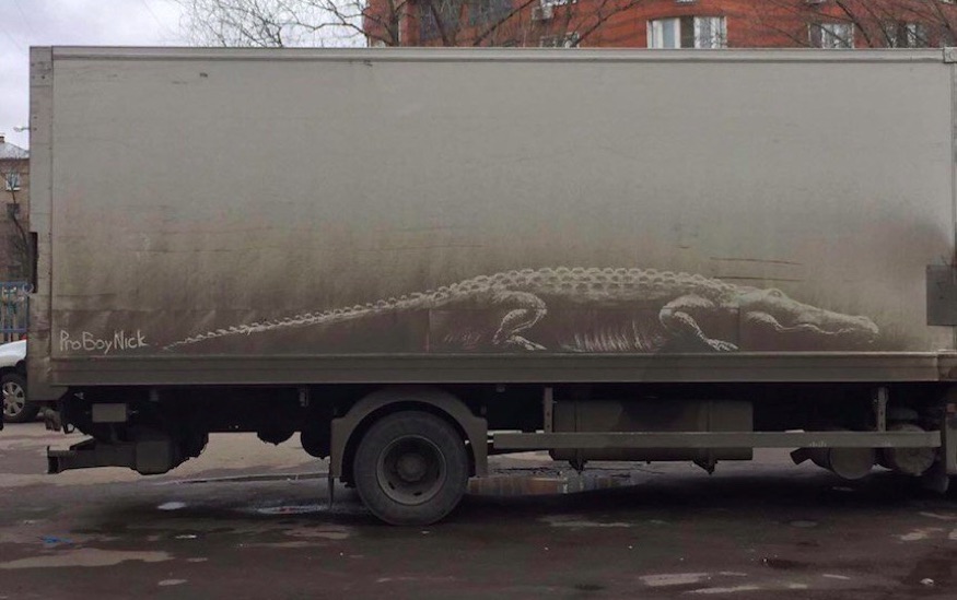 El artista ruso Nikita Golubev (proboynick) utiliza como lienzo vehículos sucios, esta técnica ya la hemos visto antes, pero Nikita es bueno. El arte efímero de Nikita Golubev.