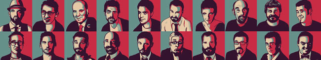 Ana: Un día Vicente Lucendo se topó por internet con una imagen de Chiquito de la calzada a lo Shepard Fairey le gustó tanto la idea de retratar a humoristas a lo Barack Obama en el poster «Hope» que se puso manos a la obra. Recopilo a sus favoritos, les hizo la ilustración, los metió en una web y añadió a cada uno con un poco de bio, enlaces a webs oficiales / redes sociales y un video de youtube. Y así nació este personal índice de humoristas. Diseño de luJAAARRRRL