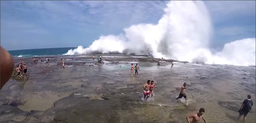 En Sidney (Australia) una ola gigante pilló por sorpresa a más de una docena de bañistas, que fueron arrastrados sobre las rocas. Hubo numerosos heridos por golpes, cortes y contusiones.