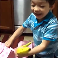 Ese día que decides gastar una broma al chiquillo diciéndole que le has comprado algo. Te pones a grabarle mientras abre la bolsa con toda...