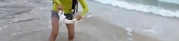 Un turista saca a un tiburón pequeño para hacerse un selfie, pero claro… el animal no entiende poses… es más de dar bocados.